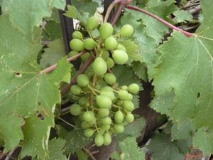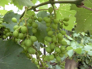 結構、たくさんの房が実っています。ブドウの葉は、大きいので、なかなか美しい角度での写真になりませんね。