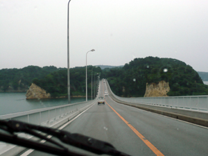 大橋を渡る景色は絶景。左は能登半島、右は七尾市の北東端になります。